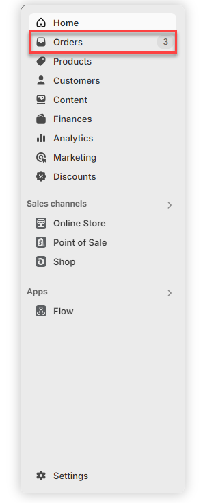 2. From Shopify Admin dashboard, select Orders from the left-hand menu.