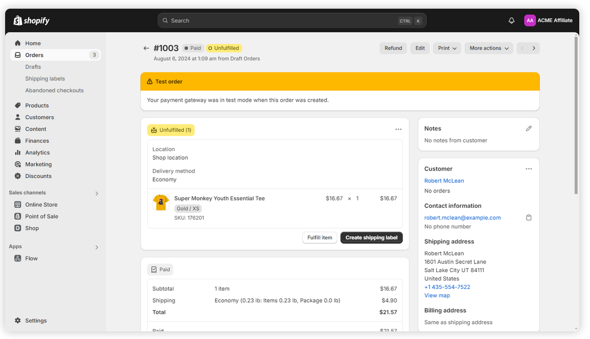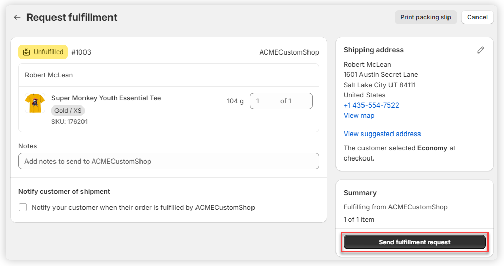 When your Shopify store is integrated with Visual Ink and set to use manual fulfillment, the orders are not automatically sent to Visual Ink for processing after a customer completes a purchase. Instead, each order must be manually reviewed and submitted by the store operator to the connected Visual Ink Fulfillment Center (FC). This article provides a step-by-step guide on how to manually submit fulfillment requests to Visual Ink from Shopify, ensuring your orders are processed smoothly and without delays.