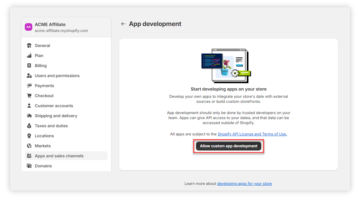 5. Click Allow custom app development