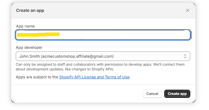 ~ Select an App developer. This can be the store owner or any staff member with permissions to develop apps.