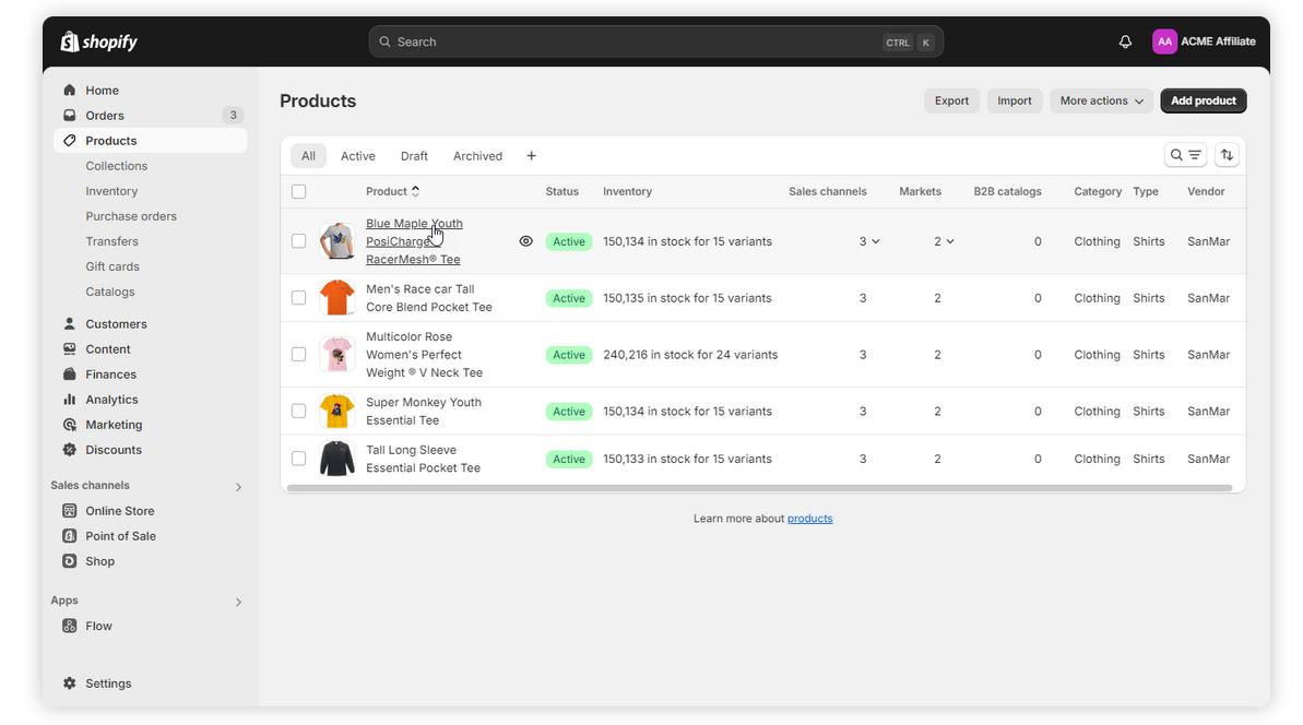 1. Go to Products in the Shopify admin panel and select the product to which you want to add the metafield.